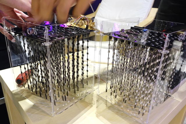 「這真的太瘋狂了!但這也再次給了我們信心,有這麼多人在追求真正的3D顯示,我們也以這個LED Cube為出發點,花了四個月的時間,結合我們的技術來改良他,成為你們現在看到,組裝用不到半小時,彩色顯示,並且可以結合各種方式互動的《L3DCube》。」
