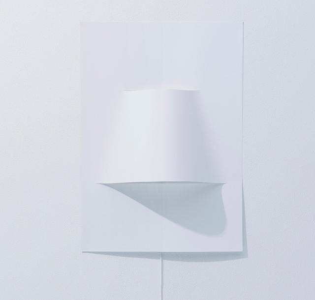 壁燈 Poster 看起來就是拿張 A2 大小的白紙,開兩刀推擠出一個空間,白紙內側再塞顆燈泡,用膠帶或釘子釘在牆上,就成了最簡便的紙雕燈具。嗯......沒錯,基本上就是這麼簡單!你的眼睛這回答對了!
