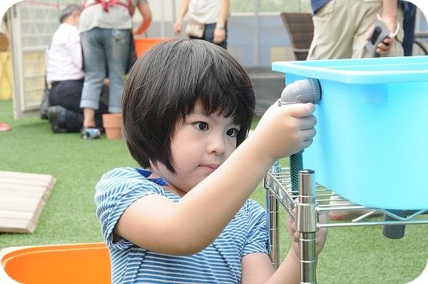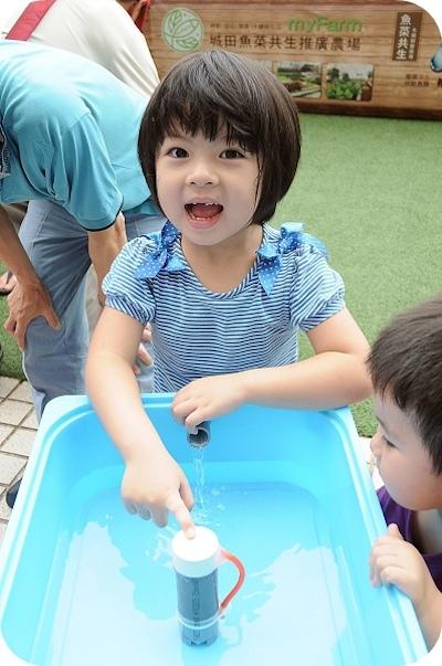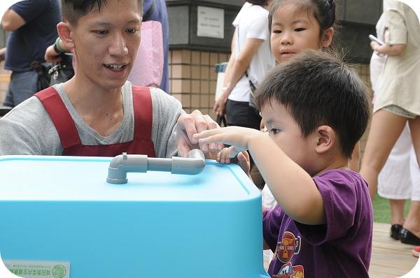 哇!水跑出來了,小朋友只要碰到水就高興了~(笑)