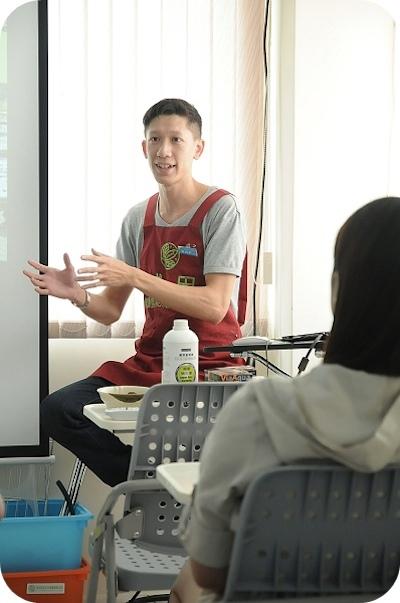 非常年輕的講師Frank帶著大家認識什麼是「魚菜共生」。它結合了「無土栽培」與「水產養殖」二大專業領域,而自成為一個專有名詞「Aquaponics」。