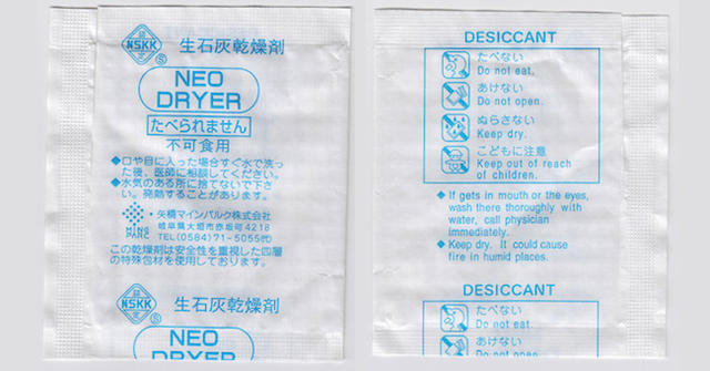 而今天先與大家介紹「乾燥劑」,它常用於藥品、食品,甚至預防皮革製品發霉的用途。成分通常為兩大種: