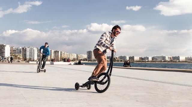 以簡單說明來介紹這部自行車的話,就是一部只由1個大型前輪和2個小型後輪組合而成的3輪車,無座椅設計,必須以站立方式騎乘,由於沒有座椅,所以一定得以立姿踩踏才能前進。