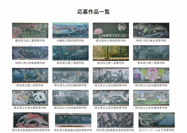 這時腦筋動的快的日本黑板廠商「Nichigaku」就想到,既然越來越多人投入黑板藝術,那何不如來辦場「日本校園黑板藝術大賞」!鼓勵學生利用黑板創作,讓更多人了解這項你我都很都熟悉,卻不知道這麼有魅力的「黑板」可以呈現如此豐富的藝術能量。