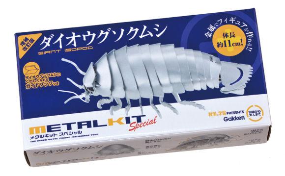 最近株式會社學研教育出版所推出的大王具足蟲金屬模型,長約13公分,從觸角到每一個關節、鱗片,幾乎都完全仿照真實世界中的大王具足蟲所設計,在組裝的同時,也能幫助大家對具足蟲更加了解。若真要挑剔,大概就是銀灰的金屬材質,和真正的大王具足蟲淡紫色的身軀有些差距。