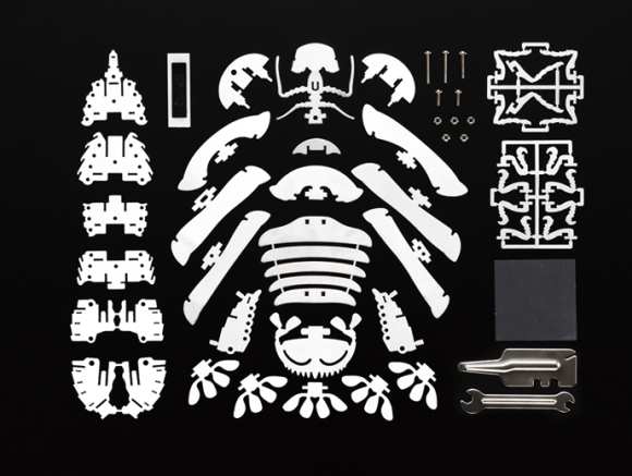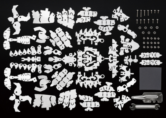 別看模型中一堆彎彎曲曲的關節、鱗片,組裝起來有點麻煩,其實模型包裝中,就內含了組裝時所需的工具包,包括固定用的螺栓和螺母,整個組裝下來,大概需要花上一個小時的時間,所以也沒有想像中複雜。就是所有零件倒出來排排站時,總是要特別小心別丟了任何一個,否則可是會發生功虧一簣的慘劇。