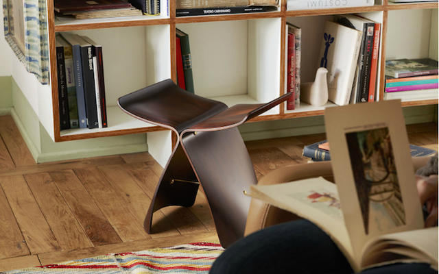 受 Eames 夫婦(Charles and Ray Eames)設計的膠合板(Plywood)家具啟發,據說蝴蝶凳 2 片如蝶翼般飛舞的櫸木片,是無意間「折」出來的造型,手工製作的弧度不僅輕盈,更透著手感的溫潤,讓人發自內心想要觸碰與使用它。而此椅的精湛設計,除了在 1957 年獲頒米蘭三年展金獎,更在隔年獲選為 MoMA 永久收藏品(後來 Vitra 設計博物館也珍藏了這款經典椅)。