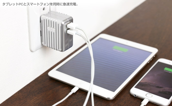熱銷了六十年,RIMOWA 經典鋁鎂合金行李箱的地位到現在都還無人能出其右,就像 Apple 的豆腐頭充電器一樣,於是 Hamee 將兩者結合,把原本方正的插頭加上直條凸紋。Trunk Type 有 1A 和 2.4A 兩個 USB 孔,可同時幫手機和平板充電,輸出力道夠、也有快速充電功能,讓你充電不用等太久!
