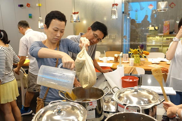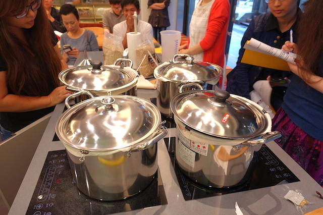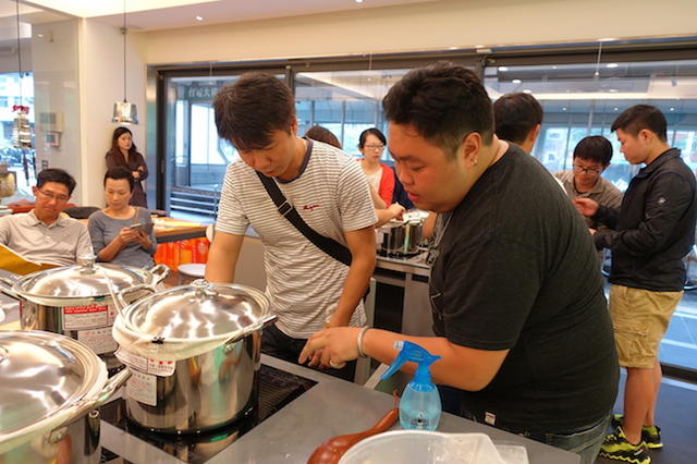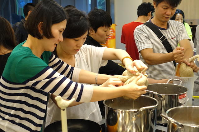 當第一階段「煮麥汁」完成之後,便要把過濾紗布與大麥全部從鍋子中移出,大家為了要珍惜每一滴麥汁,無不費盡心力與勞力,想辦法把麥汁擠出來。而在這兩張照片中,大家有發現什麼特別的地方嗎?雖然大家的印象中都存在著「釀酒是男人的浪漫」,但事實上參與體驗活動後,大編發現裡頭的學員們許多都是夫妻檔、情侶檔,以及好姐妹檔,女性的參加比例遠比想像中的高上許多。身為一個釀酒沉迷者(笑),看到這樣的現象真的十分開心,以後大家可別以為喜歡釀酒的都是臭男生,女孩子釀酒也是再正常不過的!(而且釀酒的時候很香啊~XD)