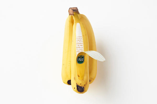 撕開香蕉皮後,看到的不是香蕉肉,那會是什麼呢?日本設計工作室 Nendo 為香蕉企業 Unifrutti Japan 所引入的高檔菲律賓香蕉 Shiawase Banana,所設計的香蕉包裝,就是在香蕉外再貼上一層香蕉膜,撕開第一層香蕉皮時,看到的不是香蕉肉,而是假扮香蕉肉的產品說明!