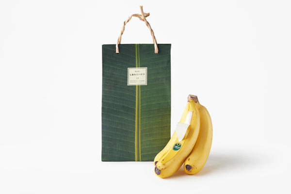 由於這批香蕉在市場屬於高級進口水果,除了有趣的貼膜標籤,nendo 還特別設計了以香蕉葉為造型的手提袋,以方便消費者購物。