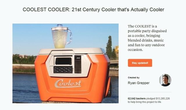 再舉個全球知名的集資案件 COOLEST COOLER,它擁有高達六萬二千個贊助者、獲得了13,285,226美元的贊助金額,相當於台幣近四億。成為Kickstarter上一季最高金額的集資專案。 (雖然最近又被Pebble二代打破記錄了)