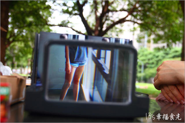 它還有個非常特別觀賞立體相片的器具,可以透過上圖看見3D相機拍攝出來的照片是雙格照片,再搭配觀賞器,讓人意想不到的驚人效果就出現了,雙眼靠著觀賞器欣賞用 3D 相機拍出來的照片,每一張照片裡的人和物都變立體了!眼睛所見的影像不再只是平面視覺,而是全都變得栩栩如生「站起來」了呢~
