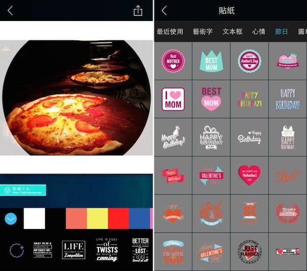 如果大家有時候沒靈感的話,可以試試看內建的藝術文字貼紙,文字貼紙都十分有型。(不過有時候貼紙點選和出現的會有錯誤,曾經安裝過的朋友也有這個問題嗎?)