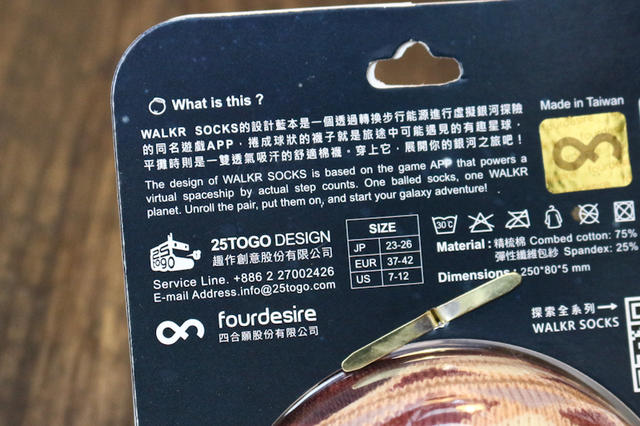 以台灣創意品牌、台灣本地製襪技術和台灣 APP 團隊的三方合作(沒錯,這款APP是台灣團隊 Foudesire 的作品),創造道地 Made in Taiwan 的《 Walkr socks》,穿著它出門心情應該會很愉悅,搭捷運也會刻意走樓梯,不時檢測今天又轉換了多少能量,間接激勵自己多動多健康,一雙襪子好處多多,可說是充滿正面能量哪XDD