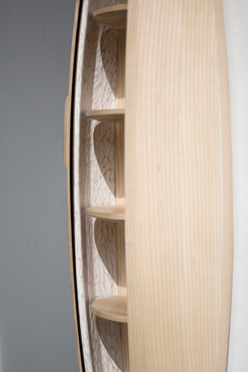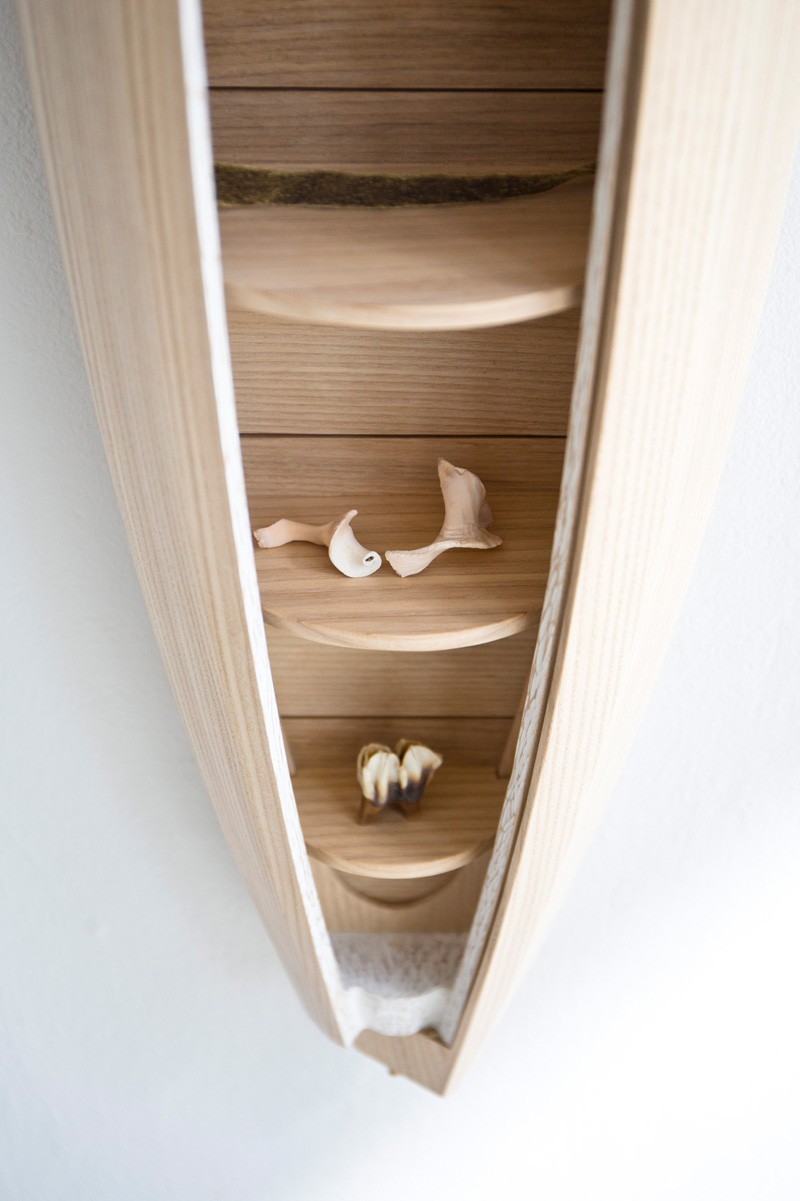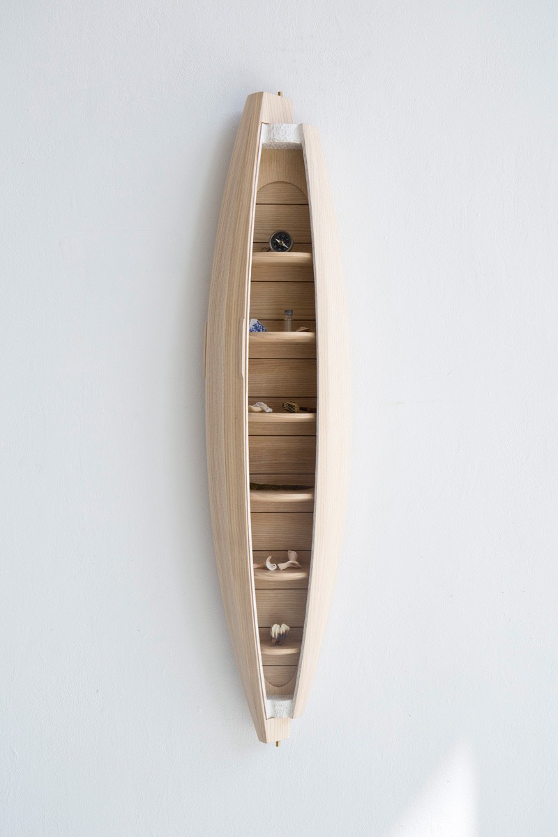 看見家具設計師 Jeremy Zietz 所創作的 Collectors Cabinet,掛在牆上,如同一艘小舟一樣,任誰看了都會對它感到印象深刻,打開旋轉式的門板設計後,才發現這不只是個雕塑裝置,還是個收納小物的櫃子!