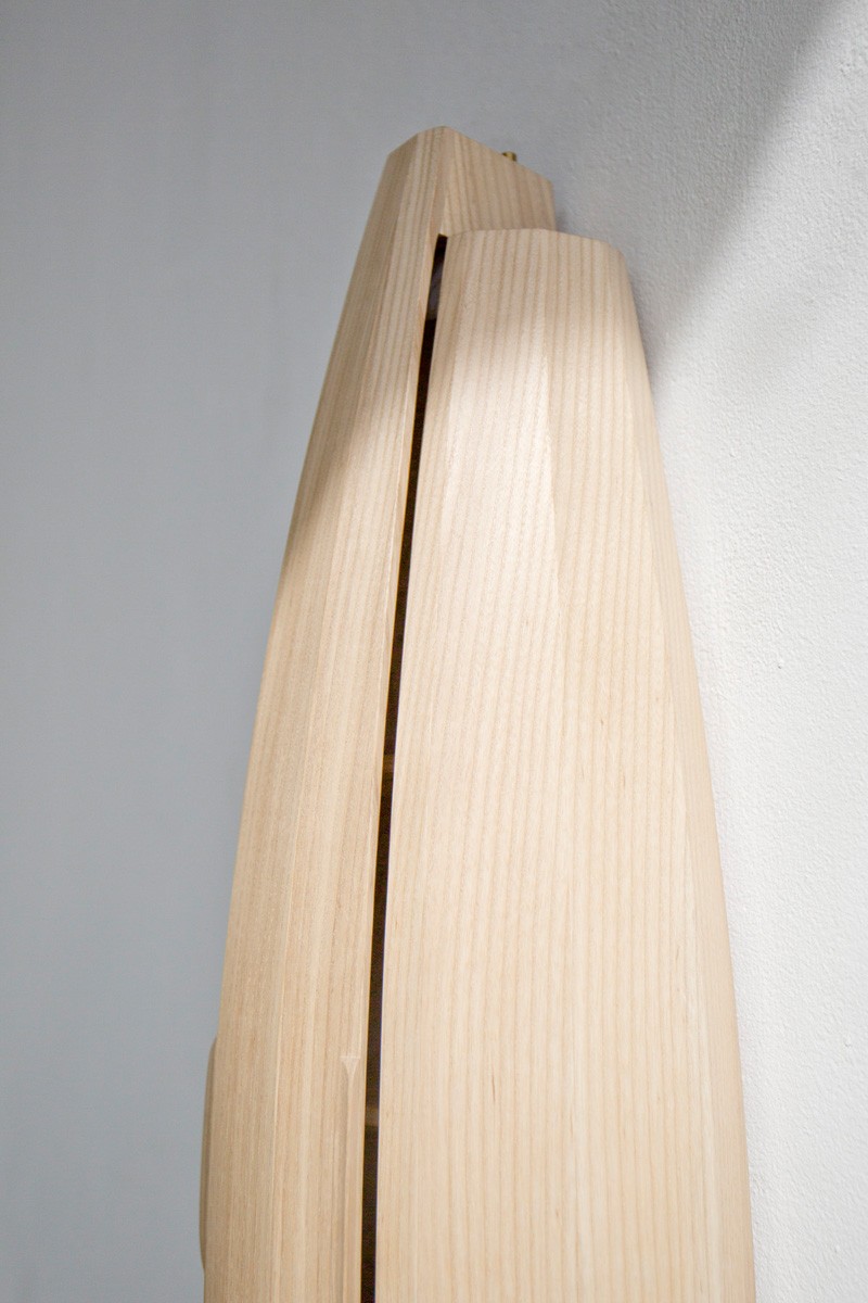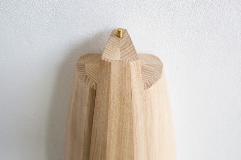 Collectors Cabinet 以美國橡木和黃銅作為材質,要將直條條的木板塑造出弧形出來,需要運用製作木桶的技巧,每一個裁切、刨型都要十分仔細,才能讓每片木片最後能夠如此契合,看起來就像是一塊木板雕刻而成。