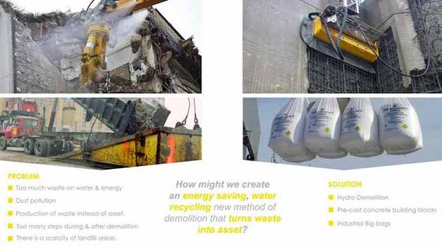 不僅如此,被分離後的砂石和水泥ERO 能將其打包回收,供之後重複利用,在這個講求環保的世代,降低了運送回收處理的成本,直接把建築廢料轉變為新的建築構件,如果 ERO 能被生產出來,相信能有效的減少被浪費的建築廢料,並擁有一個更好的拆除作業環境。