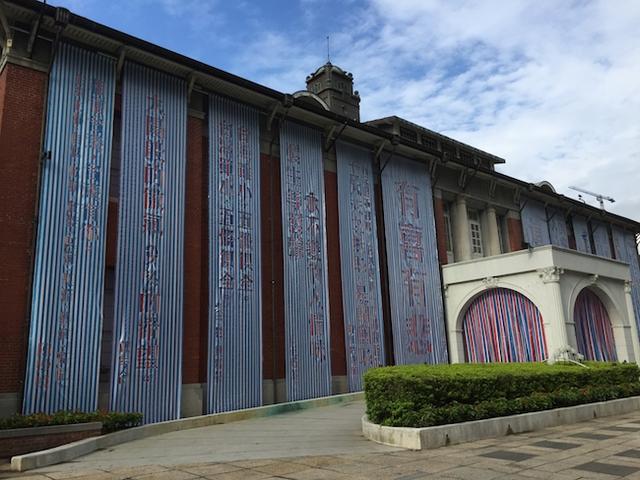 當代館外面掛滿了紅白藍大型防水塑膠布,超有台味。未料這也是香港藝術家發起,邀請台灣中學生寫下他們對於這塊土地的想像與關懷。學生們對於出自自己手筆且切割挖空的大字報,能堂皇掛在公共空間,無不感到興奮。又一山人解釋,日本人發明這樣的防水膠布,當初只有藍色款;60年代傳入台灣後,為了婚喪喜慶都能派上用場,便增添為「紅白藍」三色合用。60、70年代在香港廣泛應用於樓房興建,材料通常自台灣輸入。又一山人藉由塑膠布的平凡實在、草根堅韌、日常參與等特質,試圖傳達港人態度與精神。