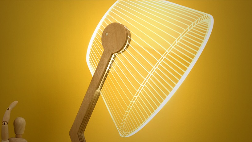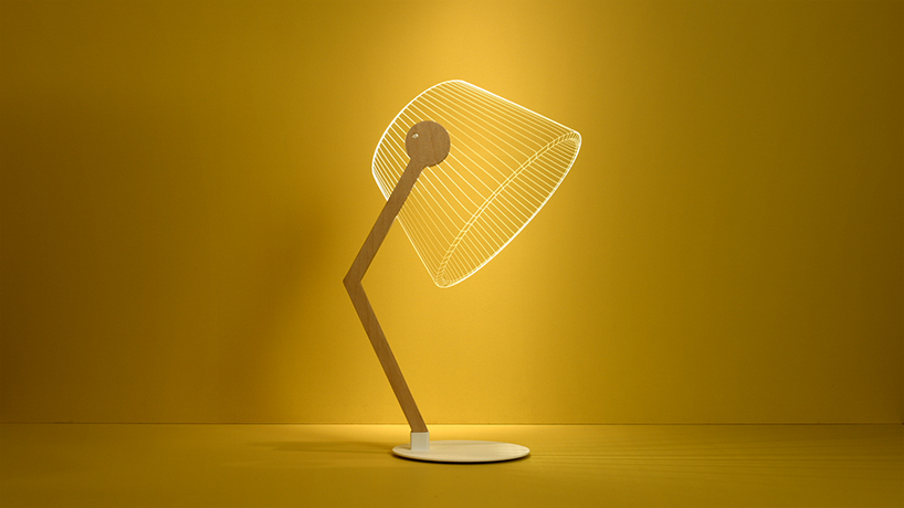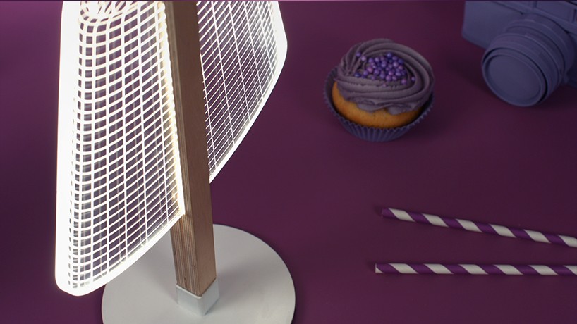 乍看之下,BULBING 系列檯燈好像用光線所組成的網,交錯而成了燈罩,柔和的光線無論放在哪都,都能自然的融入一旁的背景,但靠近一看,才發現原來燈罩根本是由壓克力片做出燈罩片,利用一條條交錯的「光線」,創造出立體的視覺效果,而真正發光的也不是藏在燈罩裡的燈泡,而是壓克力片上的這些「光線」,所以完全就是假立體真平面的高級騙術啊!