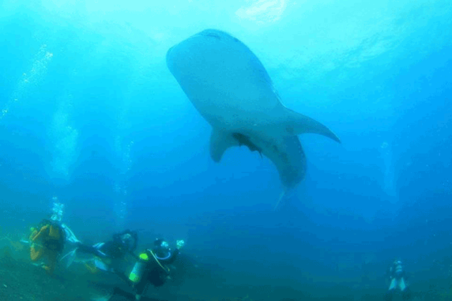 這裡最特別的地方,莫過於設置了一個充氣帳棚,潛水客累了,可以把身體伸進去呼吸空氣,而且還可以在這裡喝飲料。每年八九月,還可以看到海洋中體積最大的鯨鯊就從你身旁游過,而圓滾滾又充滿好奇心的曼波魚還會跟人互動,相當逗趣!
