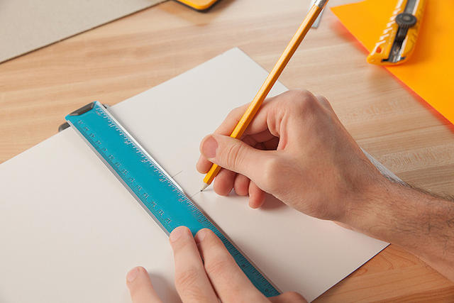紙張可以穿過工具尺的中間縫隙,並將紙張左右調整到需要標記或切割的位置。