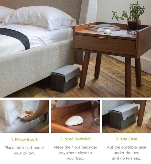 Nora 的優勢之一想當然爾是非侵入式的使用方式,讓使用者不必挑戰自己的膽量;簡潔美觀的外表也絕對能完美融入各種風格的臥室佈置;還能搭配手機 app ,記錄自己的睡眠狀況;最後,搭配好攜帶、能充電的外出收納盒,讓你旅遊出差再也不必擔心吵到室友!