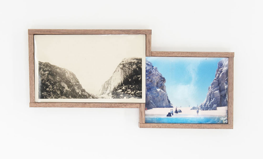 洛杉磯藝術家 J。Frede 也有類似的想法,不過他不用自己拍的照片,而是從跳蚤市場搜集照片,將類似的景物拼湊在一起,放在客製化的相框中,組建出新的景色!