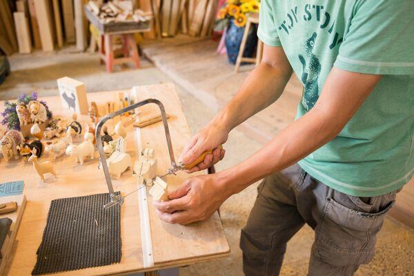 想大哥會先操作解說要怎麼割出基本的形狀,因為用的木頭是白木質地,不算很硬,所以你要溫柔的對待你的木頭,不要硬碰硬勉強他,就跟談戀愛一樣這樣不會有好的結果,然後要小心不要鋸掉自己的手,身體髮膚受之父母!