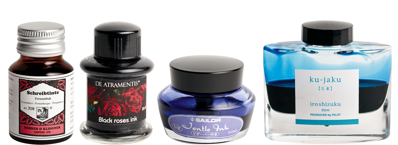 ②性能:需要防水墨水嗎?有得買。需要不易暈染的墨水嗎?放心,也是有的。除了這些性能,流動性、滑與澀、筆跡乾掉的速度也都隨著不同配方而有不同的選擇。不怕買不到,只怕筆不夠多。