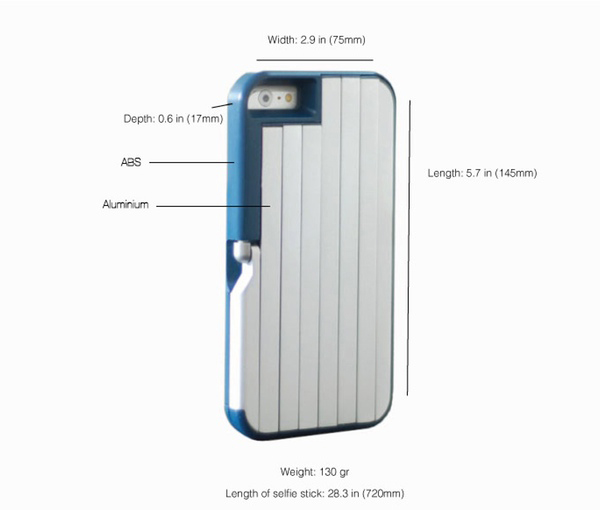 ▲ STIKBOX 從外觀來看就是ㄧ款較厚的手機殼,厚度高達了1.5公分,但因為這款手機殼的亮點就是背面,後面集合了ㄧ牌可伸縮的鋁管,而這些鋁管就是可以拉出的自拍棒,不用的時候可以收納起來在背面,需要自拍時就可以直接拉出來當成自拍棒,自拍棒最長可到達72公分,這長度也夠一般正常拍照使用了。因為本身就是手機殼,當成自拍棒時也不用怕手機沒扣好掉下來的問題。