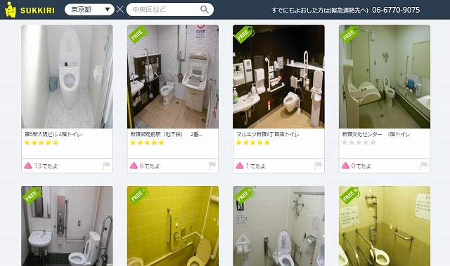 為了因應那樣生理方面的緊急事件,有業者開發了一項令人再高興不過的服務。自11月25日起營運的「SUKKIRI」是『日本首次出現廁所搜尋網站』。