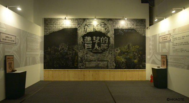 「進擊的巨人展」以《進擊的巨人》漫畫中的著名場面為中心、利用影像結合燈光音效裝置的「襲擊」體驗劇場,一比一等身大的「超大型巨人」以及漫畫中的地下室、古利夏的研究室等實景展示,再加上原作者諌山創的手稿、創作筆記等,另外還包括「艾連」梶裕貴等人氣聲優原音重現的中日文語音雙導覽,宛如調查兵團「聲」歷其境,陪同觀眾一起看展。