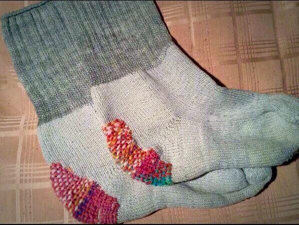 @basilsauce說,當他發現襪子破了而開始補破襪後,他就無法停止下來,如今他已經穿著同兩雙襪子超過二十年,而襪子上滿滿都是不同的縫線、補丁,看起來就好像五顏六色的小裝飾,好不可愛!