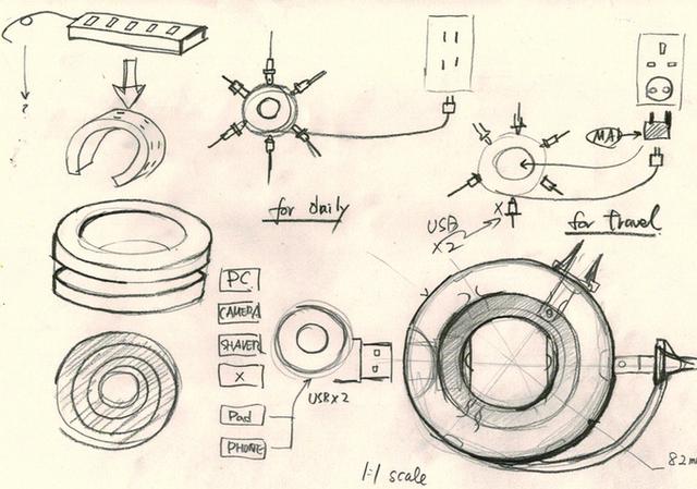計畫的發起人是一位女大學生,有鑑於充電設備實在太多,諸如筆記型電腦、相機、手機、行動電源、音響等等(應該大家都是這樣吧XD),而且通常需要在同一時間插電,她的小公寓空間總充斥著雜亂的電線與充電器。