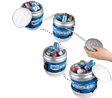 世界上最遠的距離,是沙發到冰箱的距離,當一個國家的人們懶到一個極緻的時候(美國人就是在說你們啦!),往往會出現很多結合了狂想與實用的產品,比如這台無線遙控冰桶。