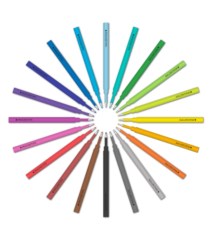 由英國設計團隊 Typica 所推出的「 MAGNETIPS 」 是一款磁吸彩色筆,在簡約的外觀下,每一枝色筆兩端都藏有強力磁鐵,因此使用者能輕易地將筆和筆吸在一起。