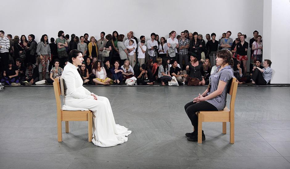 2010 年,瑪莉娜阿布拉莫維奇在位於美國紐約市的現代藝術博物館(MoMA)創作了一個改變她一生的表演作品《藝術家在此》(The Artist is Present, 2010)。她坐在一張椅子上,面對一張空椅子,任何人都可以坐下與她眼神交流。