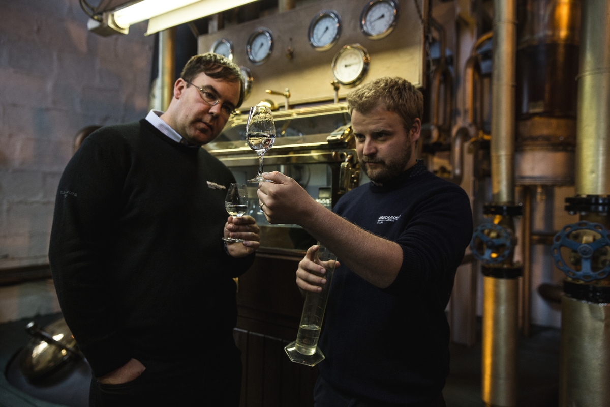 布萊迪首席蒸餾師 Adam Hannett(右)與生產營運總監 Allan Logan(左)。