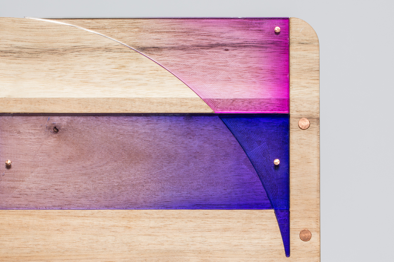 一把木製椅子,用五顏六色的壓克力板,去拼湊重疊一個個設計感十足的幾何圖案,象徵著這些老舊貨架的前世經歷,在這新生的一世留下更為閃亮的印記,卻又不突兀或顯得造作!