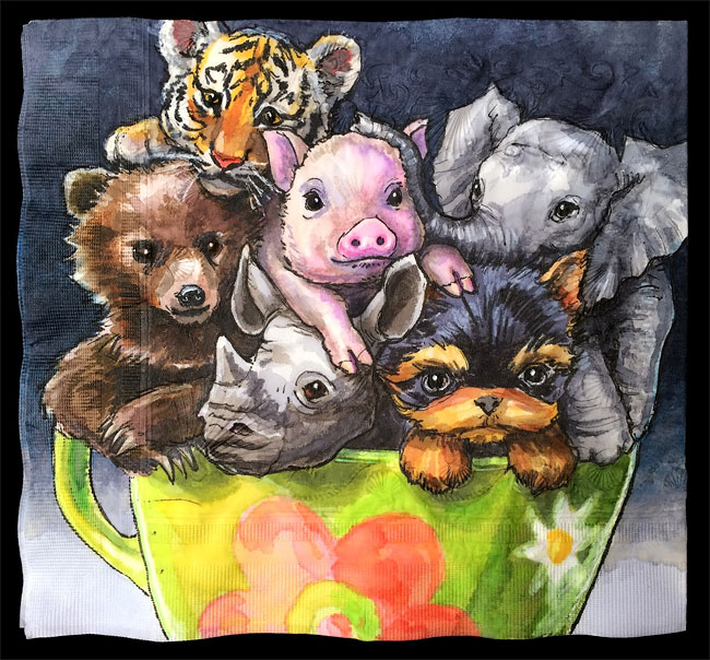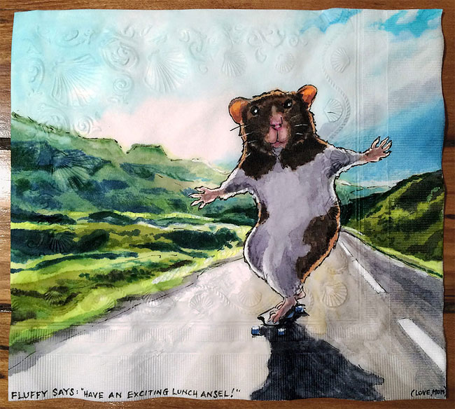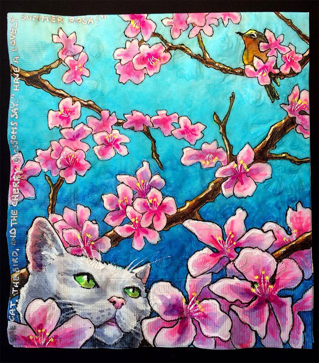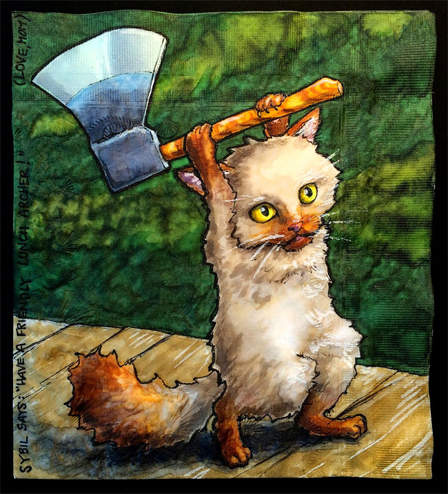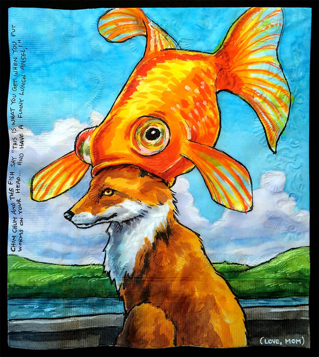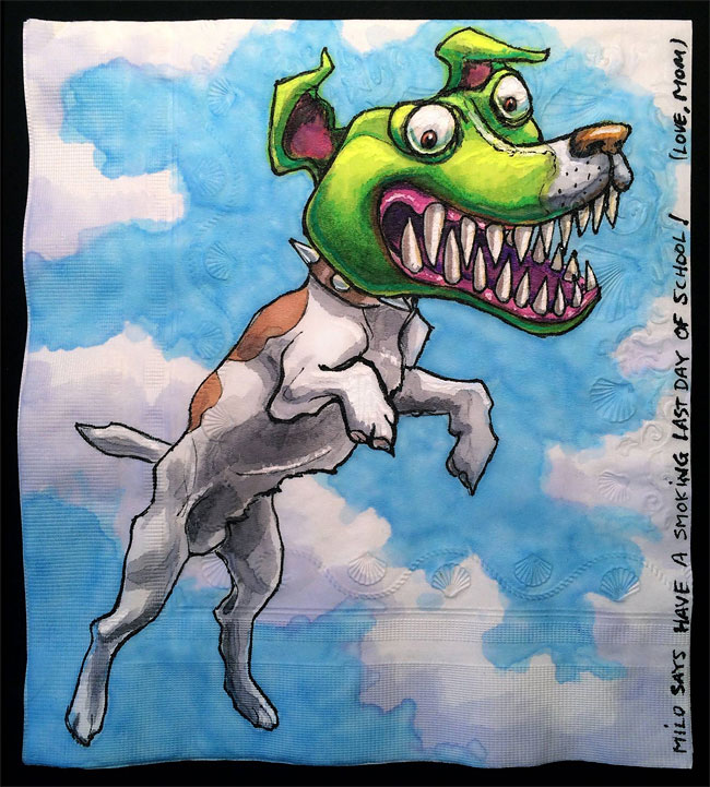 擁有攝影師、插畫家、雕塑家多重身分的 Nina Levy,有一個最偉大的職業──母親。與其為孩子午餐的菜色變化傷腦筋,聰明的媽媽利用她的專長,在餐巾紙上妙筆生花,至今已「從業」長達六年的歲月!