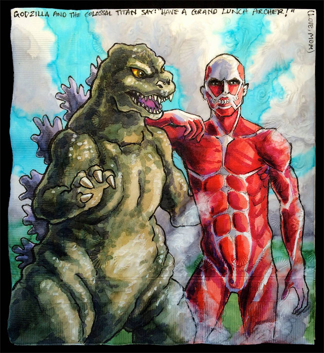 對於一個孩子來說,除了放學回家以外,最令人興奮的是:今天中午便當的菜色如何?而對於才華洋溢的媽媽 Nina Levy 的兩個兒子來說,餐巾紙才是能讓同學驚呼連連的炫耀財(誤)!