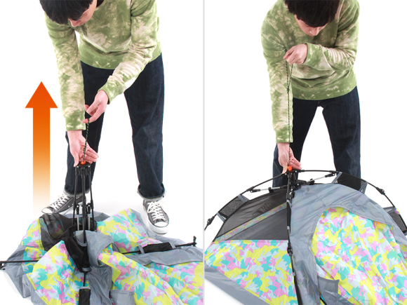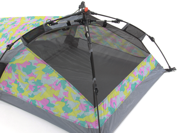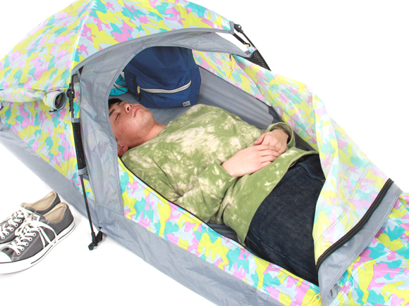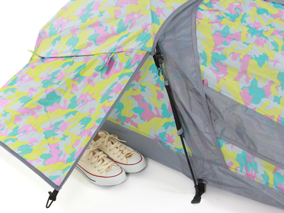 為了確保通風,Gap Tant 特別在帳篷上保留了網狀設計,所以連生理上會被「悶」到的問題都不用擔心,另外,Gap Tent 還在帳篷外準備了一個小小帳篷,不方便帶到帳篷內的東西 ( 像是鞋子等等 ),就算留在帳篷外,也不用擔心被弄髒。