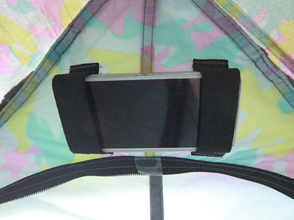 和 Crazy X 一樣,Gap Tent 的操作方式就像開傘一樣簡單,準備打包走人時,摺好後可以直接上肩,因為是單人式帳棚,所以重量更輕,只有 1.3 公斤。和 Crazy X 不同的是,Gap Tent 瞄準的是獨自參加為期數天的戶外活動的獨行俠,因為只有一個人,所以行李得跟在身邊,沒人可以幫忙顧,但也因為只有一個人,所以行李越輕薄短小越好,才不會光扛行李就把體力消耗殆盡,不過正因為只有一個人,晚上搭完帳棚後,沒人聊天、打牌、喝酒,好像有點悶,該怎麼辦呢?Gap Tent 特別在內襯的地方附上可以固定智慧型手機的帶子,可以躺在帳篷裡看電視、聽音樂,完全不用擔心孤枕難眠的問題!