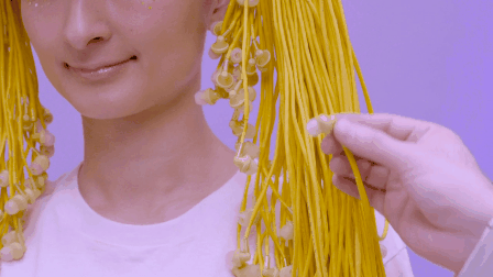 這款有趣的穿戴式智慧型裝置,是由以紐約和東京為基地的創意公司 PARTY 研發,「音樂假髮」的原型來自於該團隊去年在布魯克林展出的作品,經過改良以後,成為一束束接著耳機的髮束,單純運用朋友間會共享彼此的耳機,分享彼此在 聽什麼音樂的友好行為,研發出「一人戴假髮,眾人有耳福」的創意裝置,一共有三種造型款式,分別是像美少女戰士月光仙子的黃色長髮 POP STAR 款、一頭小黑捲髮的雷鬼上師款(Reggae Guru),以及充滿中古歐洲音樂氣質的古典大師款(Classical Maestro),隨個人喜好任君挑選。