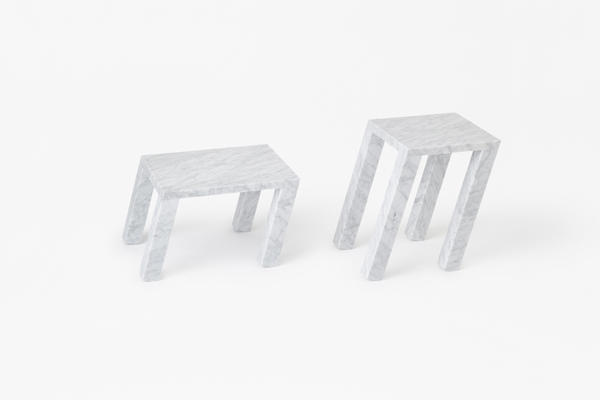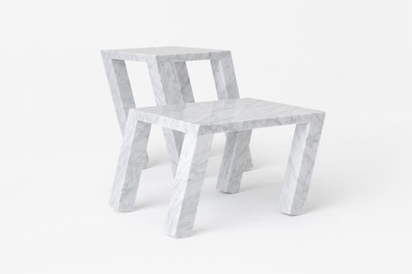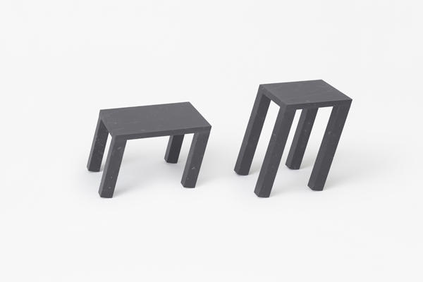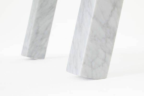 大理石的笨重不堪,通常被視為是個負面因素,但來到Nendo設計團隊手中,卻剛好成為平衡桌子的最佳武器,特別是當桌腳朝單邊傾斜,眼看就要摔倒時,靠著桌腳的重量分布,反而讓整張桌子站得穩穩穩,而且讓向來不怎麼靈活的大理石動起來,多了「原來也可以這樣搖擺」的驚喜。