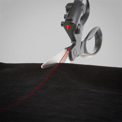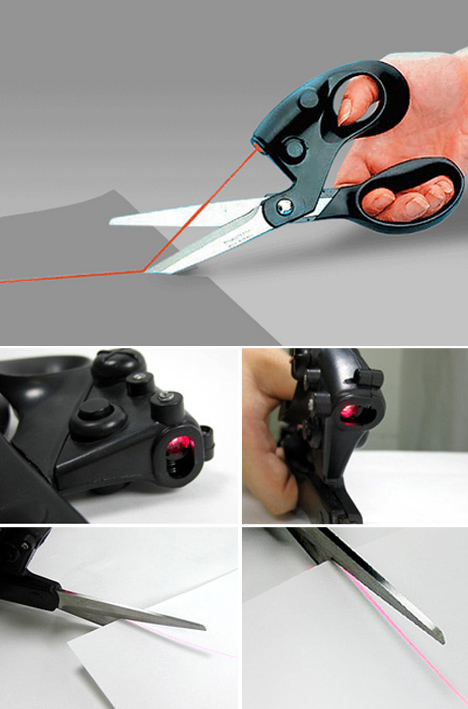 考量到使用者的方便,雷射的能源來自於一個小水銀電池,所以整把剪刀也不會因為多了這兩樣東西變得很重。 除了剪紙之外,也很適合用在剪布或者皮件喔!