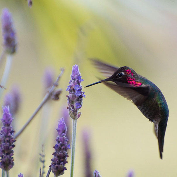 按照目前的生物演化史,鳥類其實是恐龍後代的一支(另一支是爬蟲類),如此歷史悠久的族群,無論是彩衣的變幻多端、歌聲的婉轉動人,鳥確實是地球上不可或缺的角色之一,也常常被用來象徵自由、無拘無束的意象。熱愛音樂的攝影師 Tracy Johnson,深受蜂鳥吸引,在自家後院拍下一張張飛舞小精靈的美麗身影。