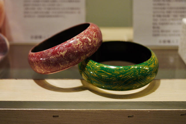 現場解說人員特別請我看看這個甕,漆器上色的方法是層疊式的,每塗完一層、就要等它自然乾燥後才能繼續畫,這個甕花了工藝師好幾年的時間才完成,靠近看可以明顯看到顏料堆疊之間產生的立體空間,相當細膩的工法,價位也是驚人五十萬台幣,欣賞過程中真的會忍不住屏著氣息哪XD