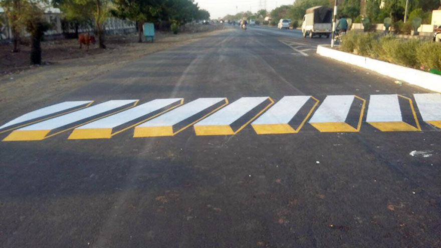 當然啦,這些塗鴉只有遠看才很逼真、一靠近就會破功了,但是 Nitin Gadkari 認為,只要能做到讓駕駛減速,就發揮這些塗鴉的功效,畢竟加裝再多路牌、斑馬線畫得再多,只要駕駛車速過快、就統統都一閃而過完全看不見了,只有前方這些貌似減速坡的玩意兒才能真正有效引起他們的注意。