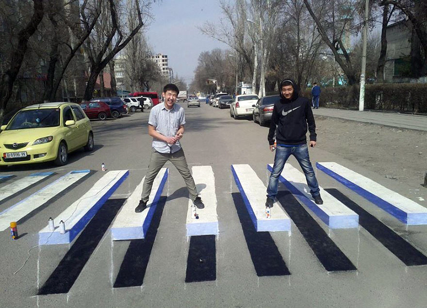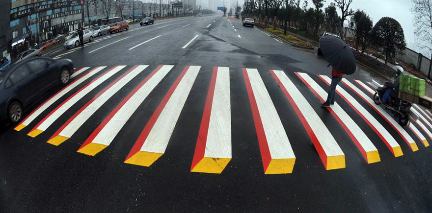 印度交通部長 Nitin Gadkari 就衝著這點,請人在許多路口畫上了立體塗鴉,讓駕駛從遠方就會開始踩煞車減速,一來能強迫減緩車速,也能增加行人被注意到的機率,不至於因為車速過快而猝不及防地撞上。